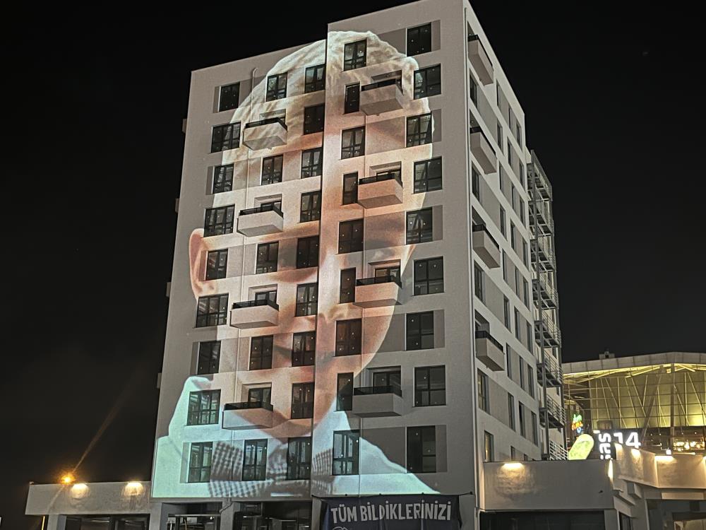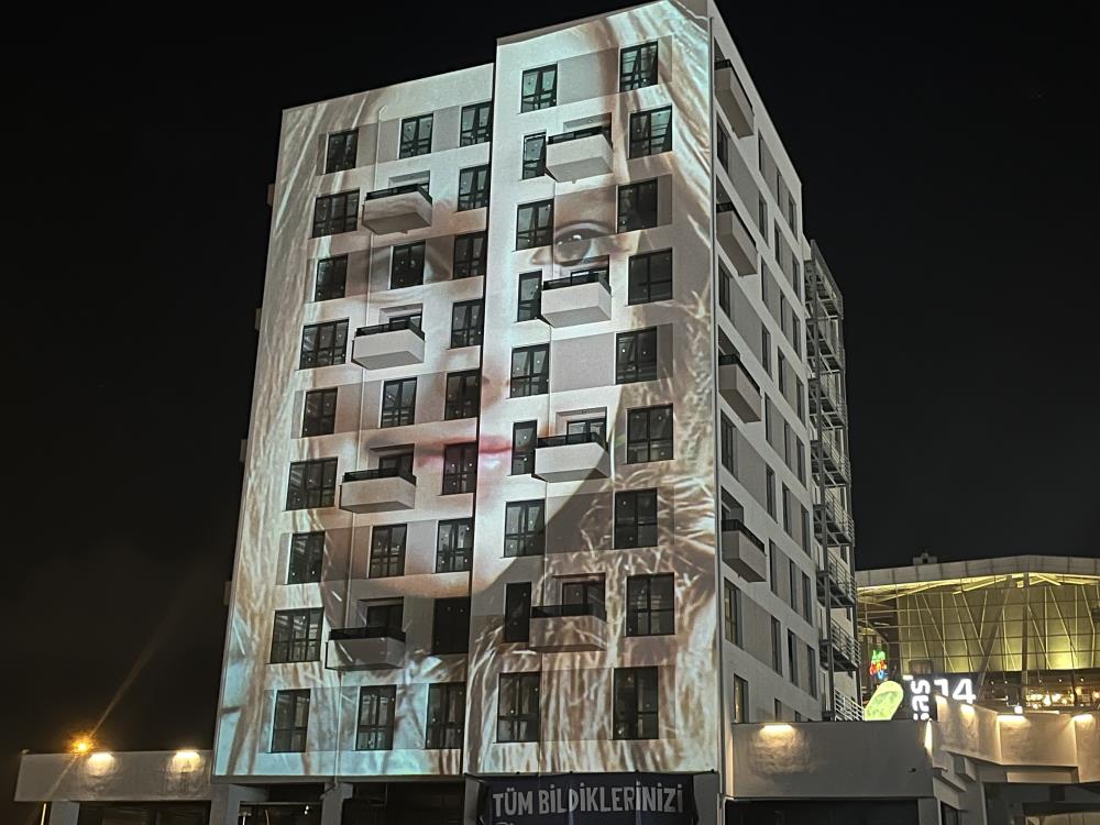 Bolu'da Grand Kartal Otel faciasında eşi ve kızını kaybeden iş adamı Rıfat Doğan, yaşanan yangın faciasında hayatını kaybeden çocukların fotoğraflarını projeksiyonla binaya yansıtarak andı.