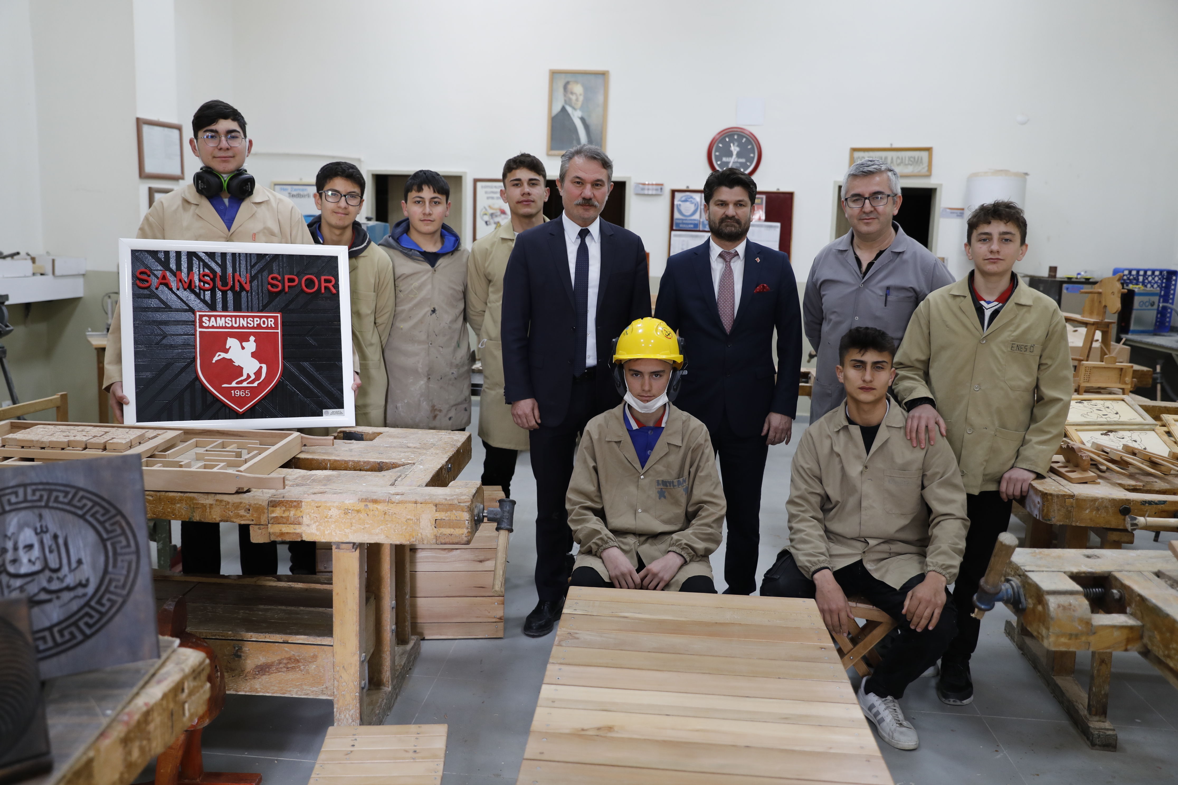 Havza Mesleki ve Teknik Anadolu Lisesi'nde sıfır atık kapsamında ahşap ve metal bölümlerinde üretim gerçekleştirildiğini belirten Ertuğ, yapılan işlemin ardından ortaya yeni ürünlerin çıkarıldığını anlattı.