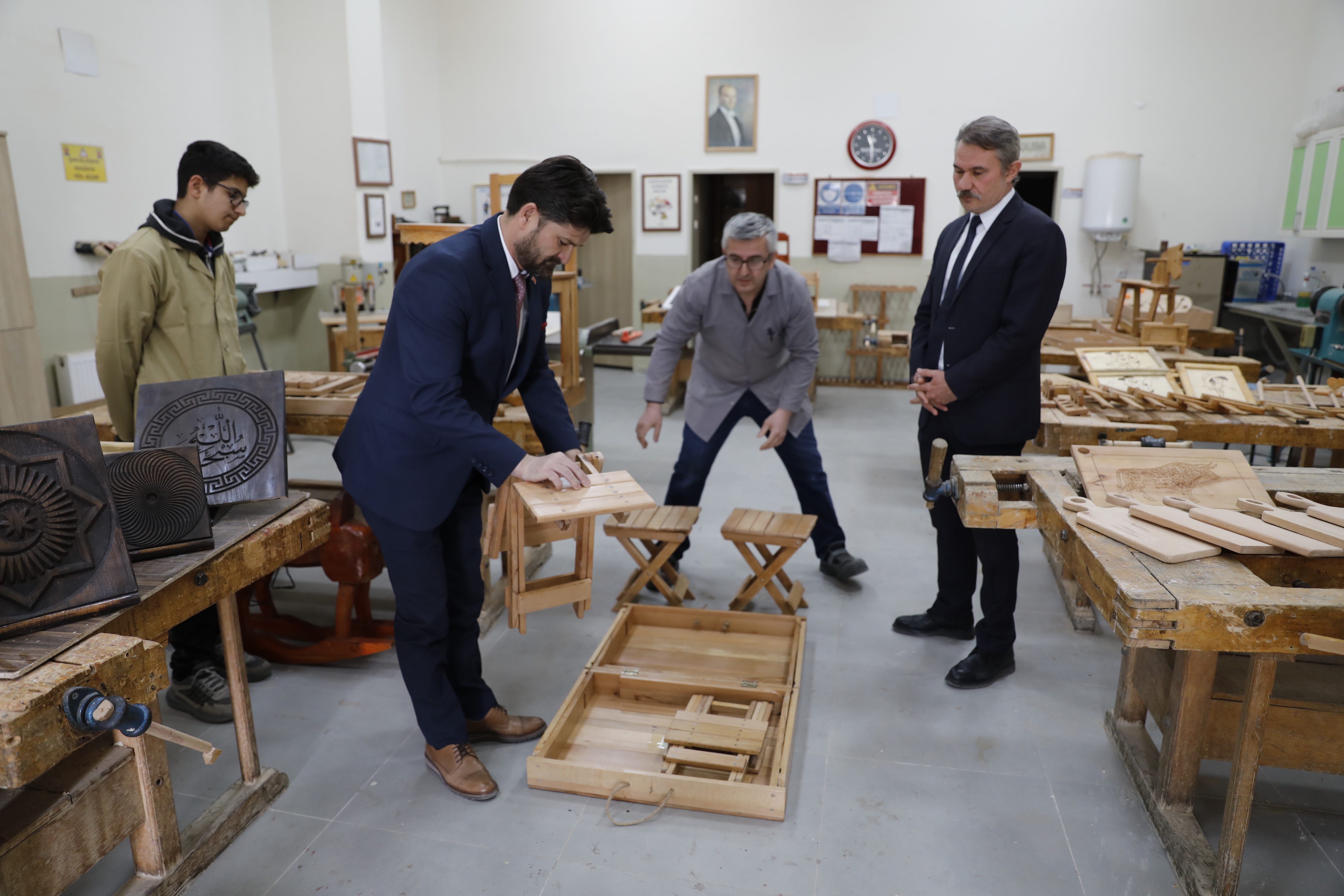 Mobilya ve iç mekan tasarımı alanı 11. sınıf öğrencisi Satılmış Ceylan ise atık malzemelerden kullanılabilir ürünler ürettiklerine dikkati çekerek, "Atık malzemelerden kullanılabilir malzemeler yapıyoruz. Sandalye, tabak, satranç takımları yapıyoruz. Okulumuzdaki döner sermayeden de harçlık kazanıyoruz. Ahşapla uğraşmaktan çok mutluyum." diye konuştu.