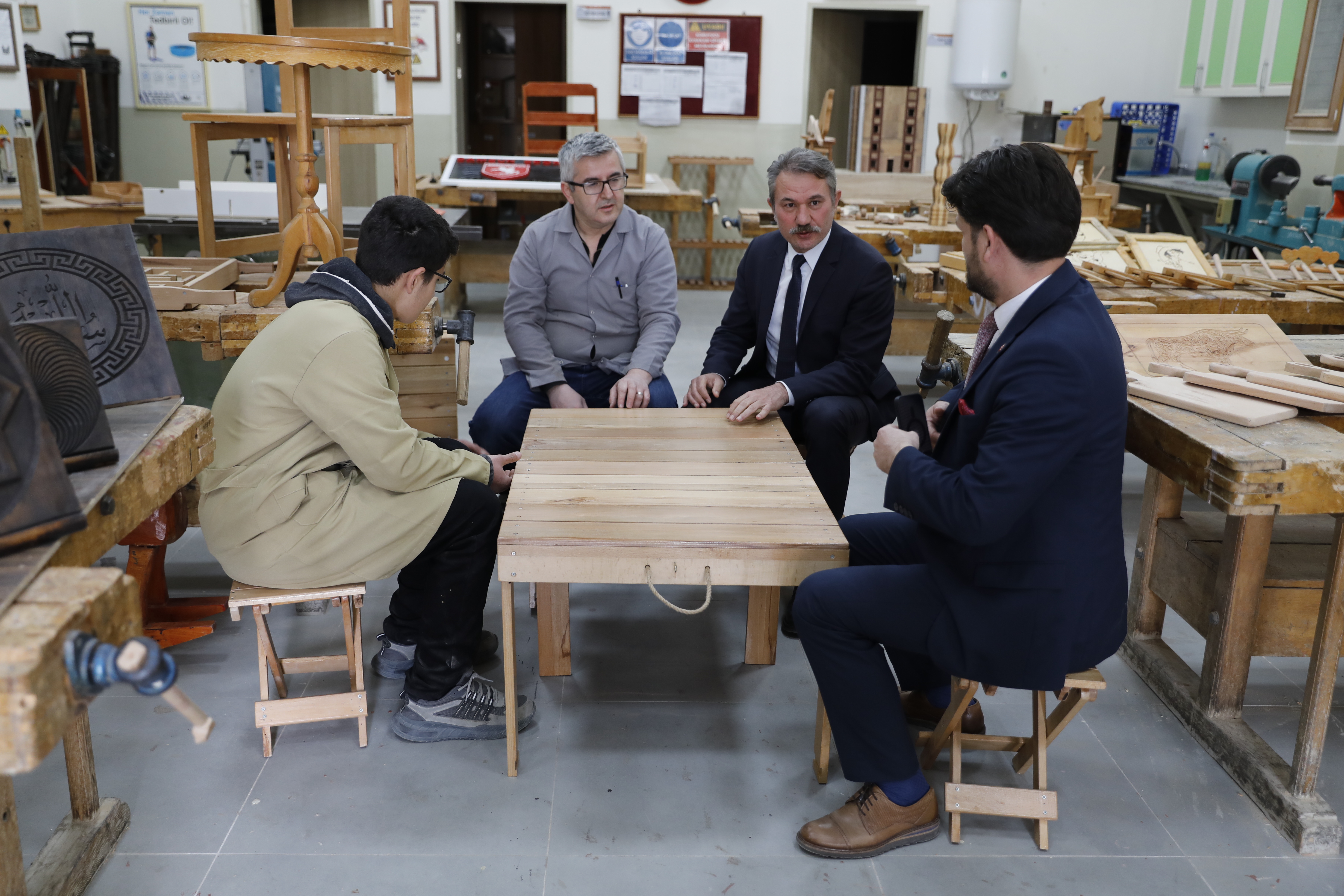 Öğrenciler, ahşaptan sandalye, tabak, satranç takımı, metalden de çit, saksı, sıra ve masa ayağı yapıyor. Yapılan eşyaların satılmasından elde edilen gelirden, okulun döner sermayesi aracılığıyla üretimde yer alan öğrencilere de pay veriliyor.