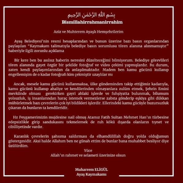 Bu iddiaların ardından Kaymakam Muharrem Eligül, X hesabından hem Türkçe hem