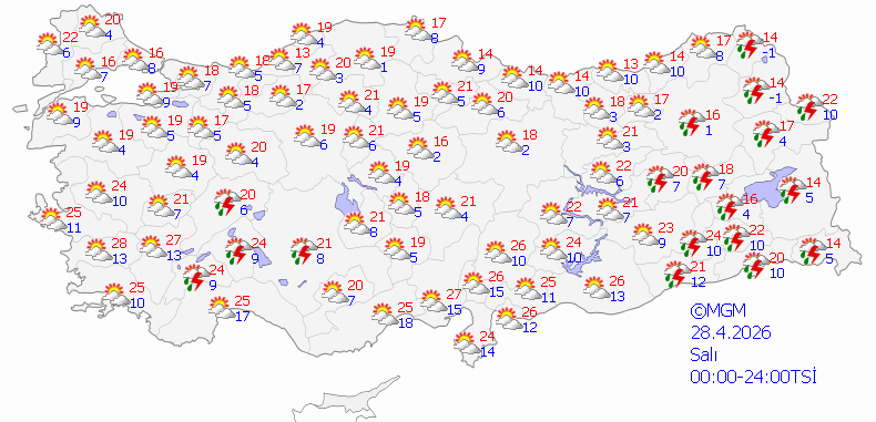 Meteoroloji Genel Müdürlüğü Hava Tahmin Uzmanı Fevzi Burak Tekin, 28-29 Nisan tarihlerinde İstanbul, Ankara ve İzmir'de yağış beklenmediğini, havanın parçalı ve az bulutlu olacağını belirtti.