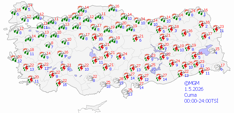 Türkiye, 1 Mayıs Cuma gününden itibaren batı bölgelerinden başlayarak serin ve yağışlı havanın etkisine giriyor. Meteoroloji Genel Müdürlüğünden yapılan değerlendirmelere göre, hava sıcaklıklarının hissedilir derecede azalarak mevsim normallerinin altına düşeceği tahmin ediliyor.