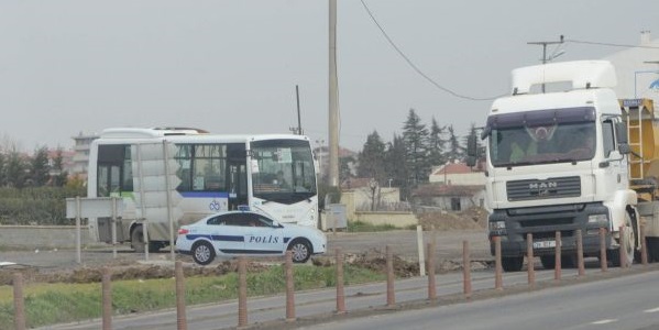 Çorlu- Tekirdağ yolunda meydana gelen kazaları önlemek ve sürücülerin hız limitlerine uymasını sağlamak için yol kenarına maket polis aracı konuldu.