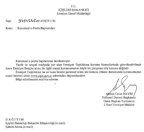 Emniyet Genel Müdürlüğü, bekçi alınıp alınmayacağını soran vatandaşlara "Bu yönde bir çalışma yok" yanıtı veriyor