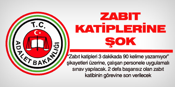 Adalet Bakanlığı, taşraya gönderdiği yazıda, zabıt katiplerine 3 dakikada 90 kelime yazıp yazmadıkları konusunda, uygulamalı sınav yapılmasını istedi