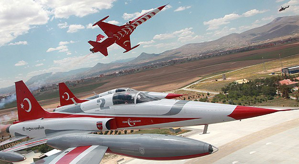 Türk Yıldızları'nın, NF-5 jet uçaklarıyla saatte 960 kilometre hızla gerçekleştirdikleri tehlikeli gösteriler sırasında, aralarındaki mesafe zaman zaman bir metreye kadar düşüyor.