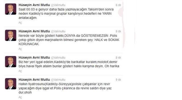 İstanbul Valisi Hüseyin Avni Mutlu, Kadıköy'de iki gündür süren gösterilerle ilgili Twitter'da açıklamalarda bulundu.