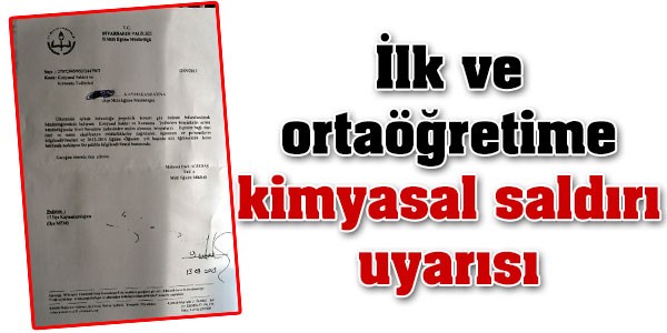 Milli Eğitim Müdürlüğü yine aynı gün içerisinde ile bağlı 17 ilçedeki tüm okullara bu kez, 'Kimyasal saldırı ve korunma tedbirleri' başlıklı bir yazı daha gönderdi. Yazıda, "Ülkemizin içinde bulunduğu jeopolotik konum göz önünde bulundurularak müdürlüğümüzde bulunan 'Kimyasal saldırı ve korunma tedbirleri' broşürünün acilen müdürlüğümüz sivil savunma şubesinden teslim alınması, broşürlerin ilçenize bağlı tüm özel ve resmi okul - kurum müdürlüklerine dağıtılarak öğretmen ve personellerin bilgilendirilmeleri ve 2013-2014 eğitim yılı başında tüm öğrencilerin konu hakkında açıklayıcı bir şekilde bilgilendirilmesi hususunda gereğini önemli rica ederim" denildi.