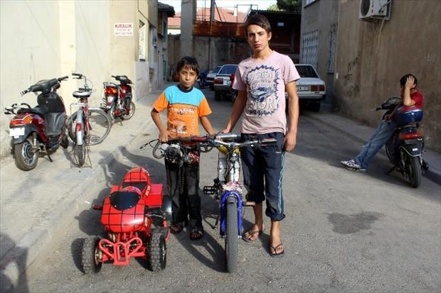 Salihli ilçesinde, daha önce hurda bisikleti elektrikli bisiklete çeviren Çetin kardeşler şimdi de benzinle çalışan ATV aracını elektrikli sistemle çalışır hale getirdiler.