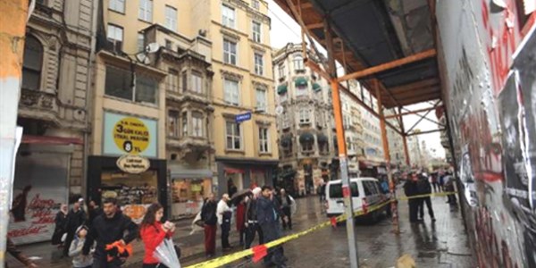 Beyoğlu İstiklal Caddesi'nde dört yıldır restorasyon çalışması süren tarihi Hasanbey Apartmanı'nın birinci kat balkonundan kopan taş, yolda yürüyen 57 yaşındaki İsmail Keskin'in başına düştü.