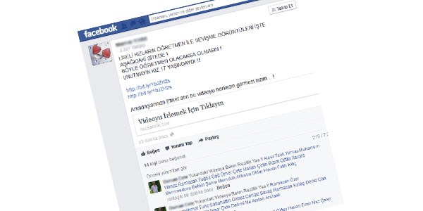 'Liseli kızların öğretmen ile sevişme görüntüleri aşağıdaki sitede' şeklinde bir mesajla "dropboxusercontent" isminde bir siteye yönlendiren virüs, kullanıcının hesabında otomatik olarak paylaşım yapıyor.