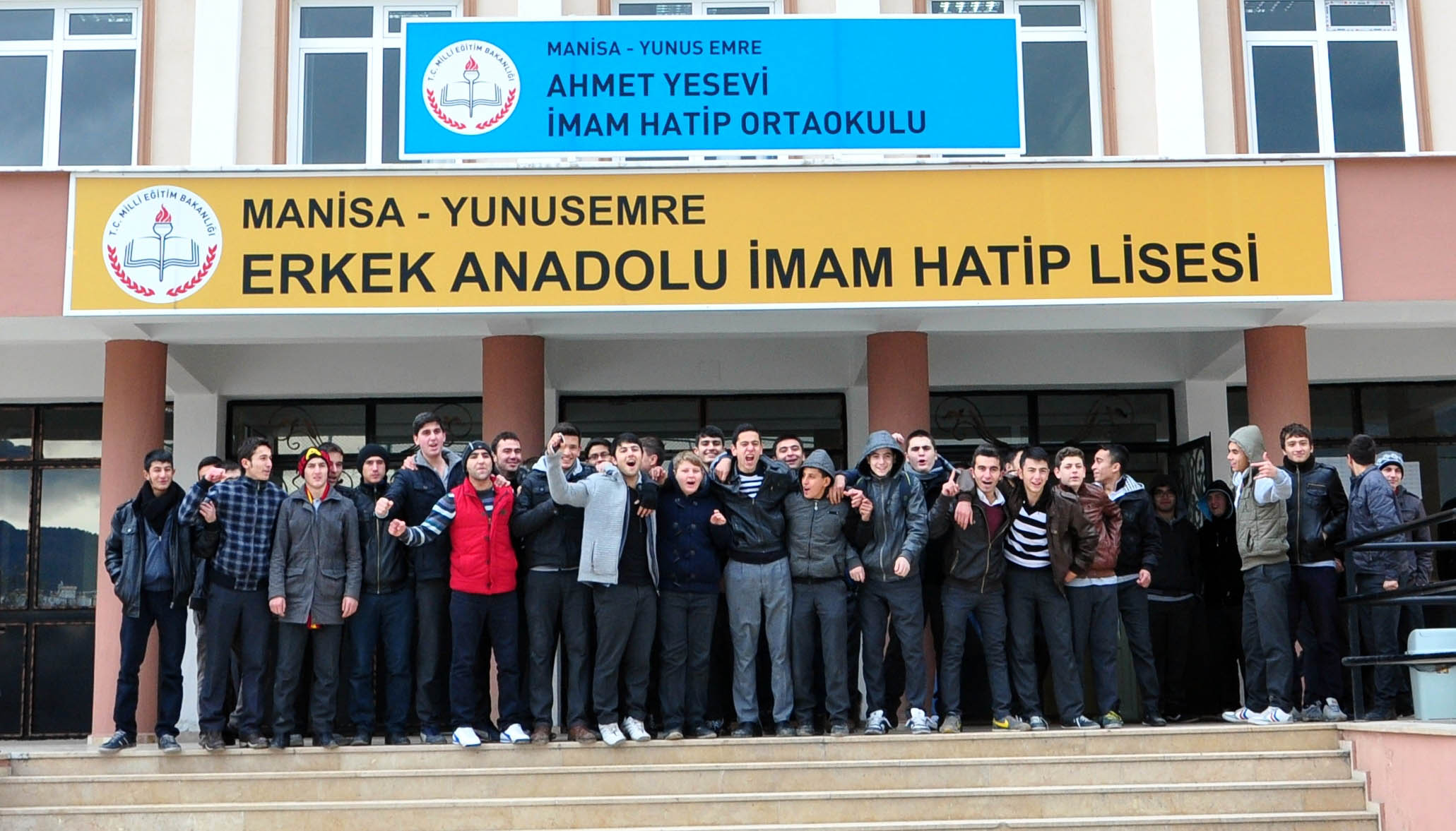 Manisa Yunus Emre Erkek Anadolu İmam Hatip Lisesi'ndeki ısıtma problemini protesto eden bir grup öğrenci, dışarıda ateş yakarak ısınmaya çalıştı