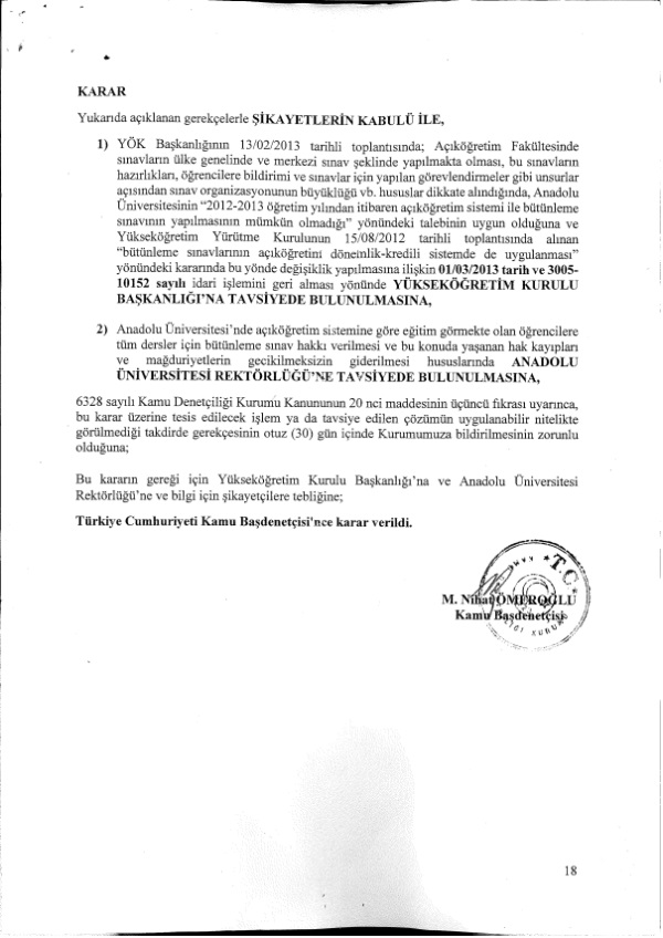 Ombudsman: AÖF öğrencilerine bütünleme hakkı verilmeli...