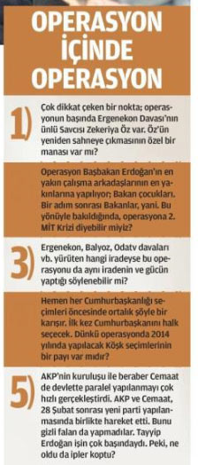 Milli Gazete bugün operasyon içinde operasyon başlığını kullanarak 5 madde sıraladı