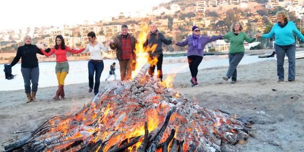 Gündoğan plajında yakılan şenlik ateşi etrafında, Çökertme ve Harmandalı gibi yöresel oyunlar sergilendi, halaylar çekildi.