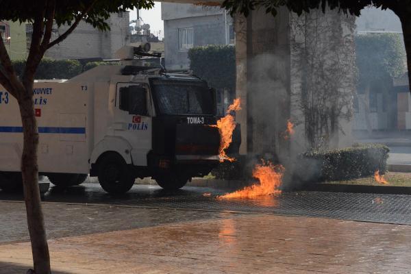 Merkez Seyhan İlçesi'nin Hürriyet, Denizli, Dağlıoğlu, Şakirpaşa ve 19 Mayıs mahalleleri ve çevresinde saat 11.00 sıralarında terör örgütü yandaşları, dikenli tel, beton parçaları ve çöp varillerle barikat kurup caddeleri trafiğe kapattı. Yolların kapatılması üzerine İl Emniyet Müdürlüğü Haber Merkezi'nden, "Ekiplerimiz, Güneykuşak, Çukurova Caddesi, Şakirpaşa Caddesi'nin pazar kurulan bölümü ile Çukurova Caddesi'ni malum konular nedeniyle kullanmayın" uyarısı yapıldı. Uyarı üzerine bölgeye zırhlı araçlar ve Çevik Kuvvet ekipleri sevk edildi. Toplumsal Olaylara Müdahale Aracı (TOMA) tazyikli su ile göstericileri dağıtırken, eylemciler de araçları molotofkokteyli ve taş yağmuruna tuttu.