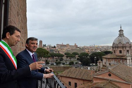 Cumhurbaşkanı Gül, Twitter'da İtalya izlenimlerini paylaştı. Fotoğraflar eşliğinde Roma'da tarihi dokunun korunmuş olmasına değinen Gül, ''Şehrin yüzlerce yıllık ihtişamlı binaları, meydanları, sokakları öyle korunmuş ki ne bir gökdelen ne de bir AVM var'' diye yazdı.
