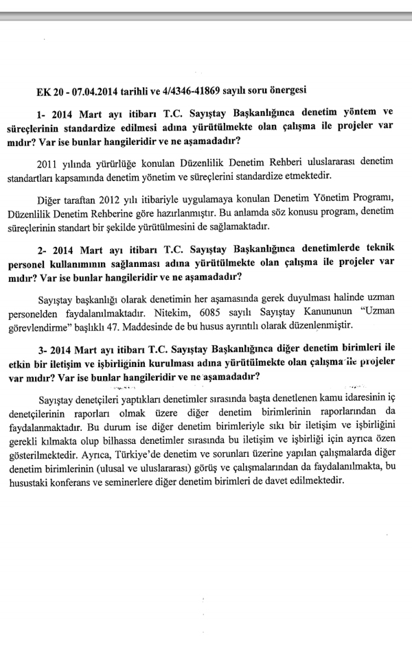 Ankara Milletvekili Özcan Yeniçeri tarafında verilen Soru Önergesi Meclis Başkanlığı tarafında cevaplandırıldı.