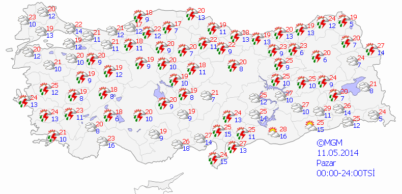 RÜZGAR :Genellikle kuzey ve kuzeydoğu, zamanla güney ve doğu bölgelerde güney yönlerden hafif ara sıra orta kuvvette, Marmara'nın kuzey ve batısı, Kıyı Ege ile gece saatlerinden sonra güney ve doğu bölgelerde yer yer kuvvetli olarak (30-60 km/s) esmesi bekleniyor.