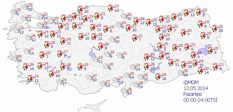 Meteoroloji'den yapılan son değerlendirmelere göre; Ülkemizin büyük bir bölümünde sağanak ve yer yer gök gürültülü sağanak şeklinde görülecek yağışların; Adana, Karaman, Konya, Burdur, Osmaniye, Kahramanmaraş, Adıyaman, Malatya çevreleri ile Hatay'ın kıyı kesimleri ve Niğde'nin güneyinde kuvvetli, Antalya ve Mersin çevrelerinde çok kuvvetli ve yer yer şiddetli olması bekleniyor.