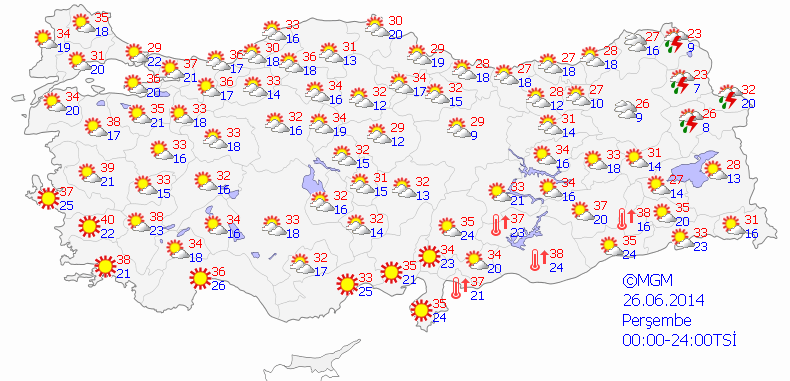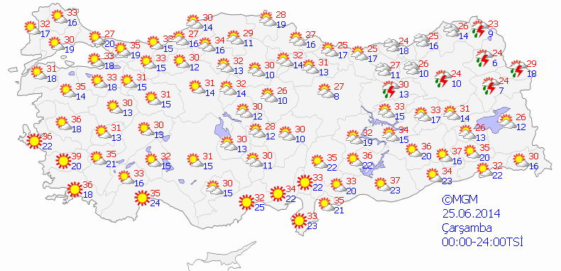 Meteoroloji'den yapılan son değerlendirmelere göre; Ülkemizin kuzeydoğu kesimlerinin parçalı yer yer çok bulutlu, Orta ve Doğu Karadeniz kıyıları, Tokat, Artvin, Kars ve Ardahan çevreleri ile Ağrı'nın kuzey kesimlerinin sağanak ve gök gürültülü sağanak yağışlı geçeceği tahmin ediliyor. Yağışların; Doğu Karadeniz kıyılarında yerel olarak kuvvetli olması bekleniyor.