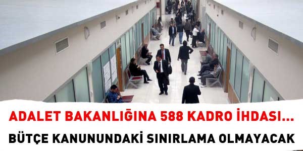 Kanun ile yargı teşkilatlarında düzenlemeler yapılırken ayrıca Adalet Bakanlığı için 588 kadro ihdas edilmiştir.
