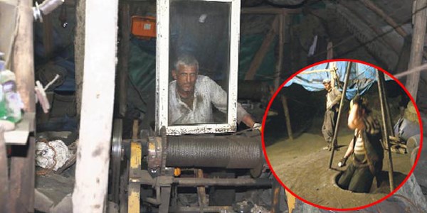 Günlük 50 TL kazanan işçiler ilk ölümcül tehlikeyi daha işe başlamadan yaşıyor. Madenciler, yaklaşık 80 cm çapındaki borulardan ince bir halata bağlanarak 150-200 metre aşağıya doğru sarkıp kömür kuyularına iniyor. Dar ve havasız olan borudan sağ salim inmeyi başaran işçiler içeride boğuk ve oksijensiz bir havayla karşılaşıyor.