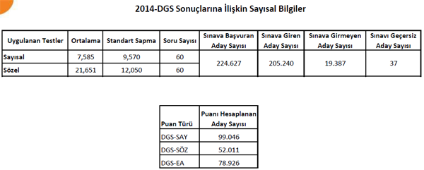 19 Temmuz 2014 tarihinde yapılan 2014-DGS Sınavı'nın değerlendirme işlemleri tamamlanmıştır.