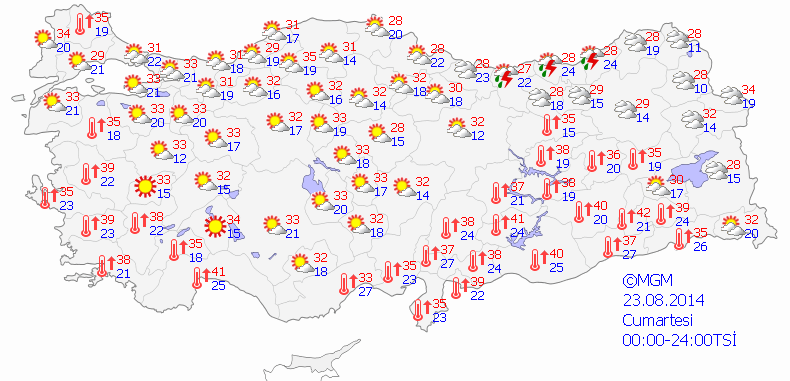 Meteoroloji'den yapılan son değerlendirmelere göre: Ülkemizin kuzey ve doğu kesimlerinin parçalı, yer yer çok bulutlu, Giresun, Trabzon ve Rize çevreleri ile Artvin'in kıyı ilçelerinin aralıklı sağanak ve gök gürültülü sağanak yağışlı, diğer yerlerin az bulutlu ve açık geçeceği tahmin ediliyor.