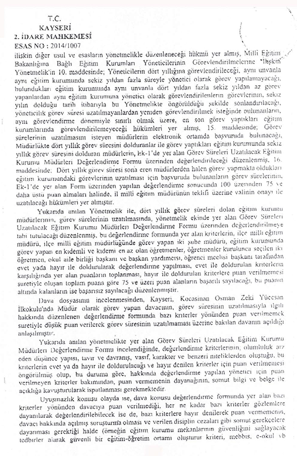 Kayseri İdare Mahkemesi, eğitim kurumu yöneticilik görev süresi uzatılmayan öğretmenin açtığı davada, yürütmeyi durdurma kararı verdi.