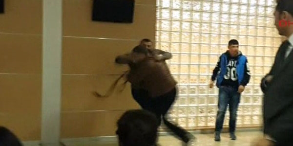 Kavga adliyenin B Blok -1. katında çıktı. "Mala zarar verme" ve "Silahla ateş etme" davası öncesi taraflar adliye koridorunda birbirine girdi. Asliye Ceza Mahkemesi'ndeki duruşma öncesi yaşanan kavgada taraflar kemerle birbirlerini saldırdı. Tekme ve yumrukların da atıldığı kavgayı adliyenin güvenlik görevlileri ile polis ayırmakta güçlük çekti. Kavgada iki gruptan da yaralananlar oldu. Adliye koridorunu savaş alanına çeviren kavga bir vatandaşın cep telefonu kamerasına yansıdı.