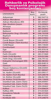 Yükseköğretim kurumlarının yeni açtığı ya da ilk yerleştirmede dolmayan yani en küçük puanı oluşmayan programları tercih edecekseniz tavsiyem, seçtiğiniz üniversiteye eşit üniversitelerin benzer programlarının kaçıncı sıradan öğrenci aldığına bakmak olacak. Bu üniversitelerin hangi puan aralığından ve başarı sırasından öğrenci aldıklarını inceleyebilirsiniz.