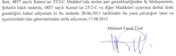 Akkuyu Nükleer Santralı Mersin Bölge Kamu Diplomasisi ve Devlet İlişkileri Bölge Müdürü olan Faruk Uzel'in istifası üzerine açıklama yaptı. Şirket Uzel'in taciz suçlamasını kabul ettiğini ve 17.08.2015 tarihinde bir istifa belgesi imzaladığını belirtti. Akkuyu Nükleer A.Ş Avukatı Kaan Keskin ise dün aralarında cinsel taciz suçlamasınında bulunduğu iddiaların kendileri için bağlayıcılığı bulunmadığını belirtmişti. Keskin, Faruk Uzel hakkında savcılığa suç duyurusunda bulunulduğunu da eklemişti.