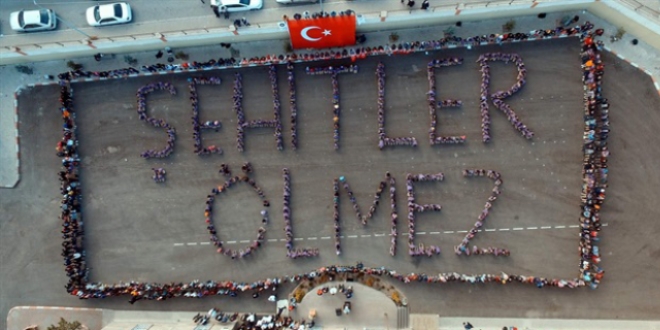 Nevşehir Lisesi öğrencileri, öğretmenleri ve personeli okul bahçesinde buluşarak 'Şehitler ölmez' yazısını bedenleriyle oluşturup, teröre tepki gösterdi. Liseli öğrencilerin bu çalışması büyük beğeni topluyor.