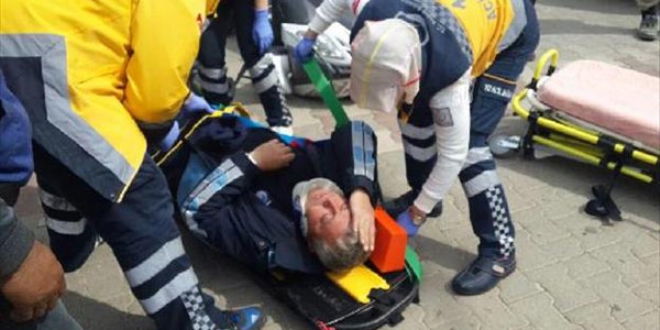 Çanakkale'nin Bayramiç ilçesi'nde, otomobilin çarptığı motosikletli zabıta memuru 52 yaşındaki Talip Uydaş, ağır yaralandı.