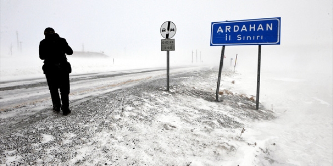 Ardahan'da etkili olan kar ve tipi, Ardahan-Artvin ve Ardahan-Posof yollarında ulaşımda aksamalara neden oldu