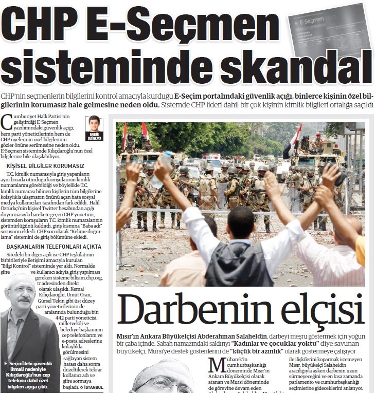 Haberde ayrıca, sitedeki açık nedeniyle CHP'de üst düzey yöneticilerinin de telefonuna ulaşıldığı belirtilerek, Kemal Kılıçdaroğlu, Umut Oran, Gürsel Tekin gibi üst düzey parti yöneticilerinin de aralarında bulunduğu bin 442 parti yöneticisi, milletvekili ve belediye başkanının cep telefonlarını ve e-posta adreslerine kolaylıkla görülmesini sağlayan sistem hatasının sonradan düzeltildiği yazılmıştı