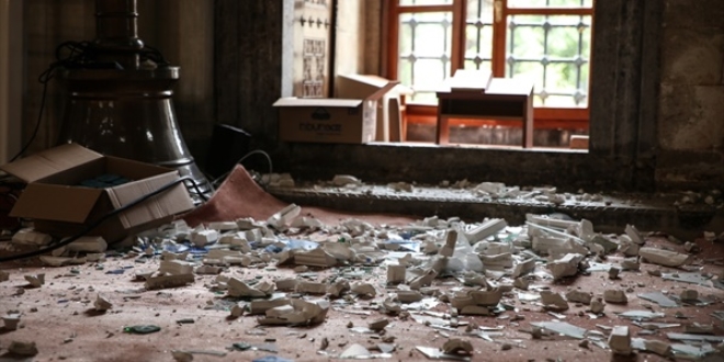 Şehzadebaşı Caddesi'ndeki Şehzade Camisi ve külliyesinin camları kırılırken, çerçeveler düştü, duvardan parçalar söküldü.