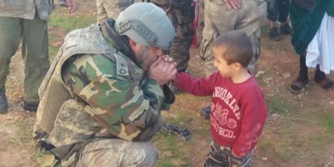 Tabur komutanı üşüyen çocuğun ellerini nefesiyle ısıttı