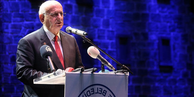 Türkiye Büyük Millet Meclisi (TBMM) Başkanı İsmail Kahraman, "Bütün çelme takmalara rağmen, bütün kullandıkları ajanlara, teröristlere rağmen, Pensilvanya'da besledikleri nankör, hain, zalim satılmışlara rağmen, asker elbisesi giyip namlusunu kendi milletine çevirenlere, bütün dünyaya rağmen gelişmemizi devam ettireceğiz." dedi.