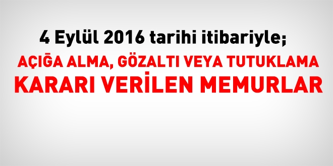 4 Eylül 2016 tarihi itibariyle haklarında işlem yapılan kamu personeli