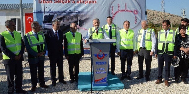 "İZBAN projesi, İzmirlilere Büyükşehir Belediyesinin ve Devlet Demir Yollarının ortak kuruluşu olan İZBAN marifetiyle örnek olacak şekilde hizmet veriyor. Milyonlarca yolcu taşınmış durumda, bugüne kadar 375 milyon insana hizmet verdi, çok önemli bir rakam. Tabii bunun Aliağa'ya uzatılması ve güneyde de Torbalı'ya ulaştırma çalışması yapıldı bitti. Tepeköye kadar malumunuz. Trenlerimiz İZBAN aracılığıyla halkımıza hizmet veriyor ancak Başbakanımızın başka bir talimatı vardı, Selçuk'a kadar uzatmamız, İzmir'e kolay erişimi sağlamak adına. Projede ihale süreçleriyle ilgili bir gecikme oldu ancak bu hafta başı yeni yüklenicimiz 26 Eylül itibarıyla işe başladı. 26 kilometrelik bu projenin bir an önce bitmesi, Selçukluların ve bölge halkının hizmetine girmesi için arkadaşlarımız olağan üstü bir gayret sarf ediyorlar."
