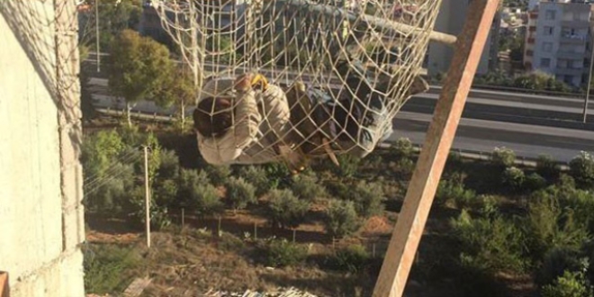 Adana'nın Çukurova ilçesinde bir apartman inşaatının 9'uncu katından düşen işçi, güvenlik amacıyla çekilen file sayesinde kurtuldu
