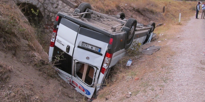 Alınan bilgiye göre, Turhal'dan aldığı tekstil işçilerini Zile ilçesine götüren Şerafettin Karaduman'ın kullandığı 60 M 1419 plakalı servis minibüsü, Turhal-Zile karayolunun 6. kilometresinde sürücüsünün direksiyon hakimiyetini kaybetmesi sonucu yoldan çıkarak tren yolu menfezine devrildi.