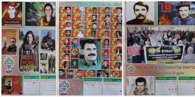 Terör örgütü PKK üyesi 40 terörist ile terör örgütü elebaşının fotoğraflarının bulunduğu 2015 yılı takviminde, HDP parti amblemi ile "HDP Yunusemre İlçe Teşkilatı" ibaresinin yer alması dikkatleri çekti.