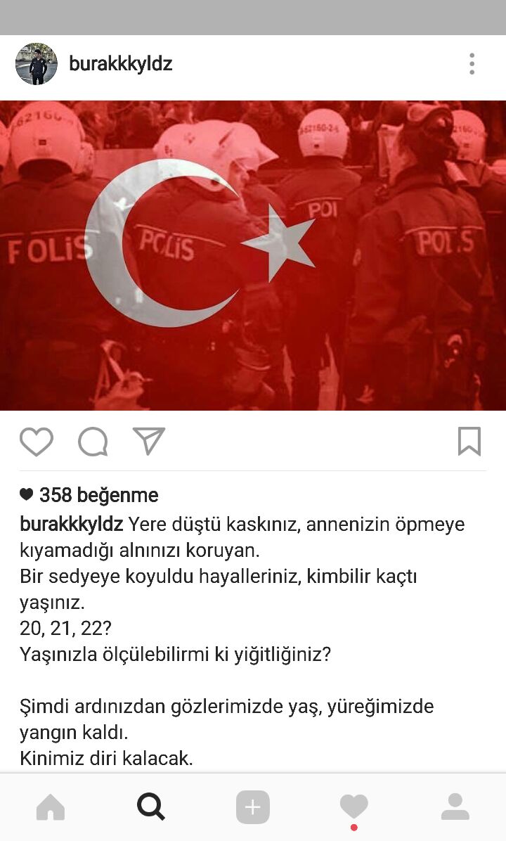 Ortaköy'de gece kulübüne düzenlenen saldırıda 1 polis şehit oldu, 38 kişi hayatını kaybetti. Şehit olan Polis Burak Yıldız'ın Instagram hesabında, Beşiktaş'ta gerçekleştirilen hain saldırı sonrası şehit olan polisler için paylaştığı bir şiir ortaya çıktı.