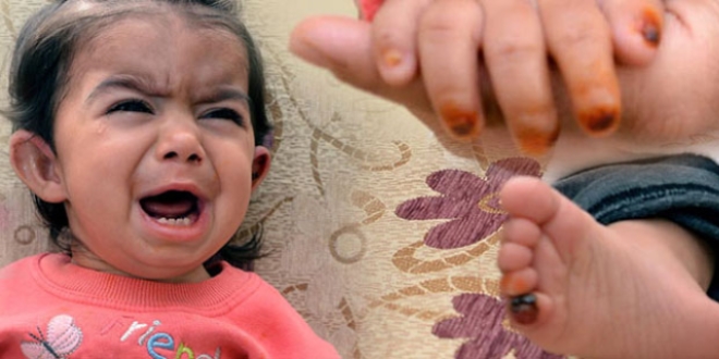 ADANA'da cilt hastalığı nedeniyle el ve ayak tırnakları düşen 1 yaşındaki Büşra Aslan'ın ağzı, kulakları, burnu, el ve ayak parmakları kanıyor.
