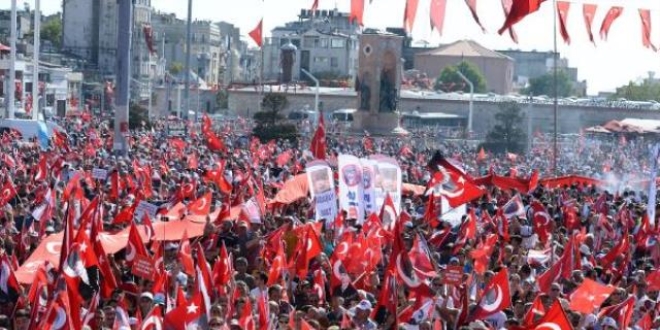 Meydanda vatandaşlar ellerinde Türk bayrağı, üzerinde "adalet" yazılı döviz ve bayraklar taşırken, "Hak, hukuk, adalet" şeklinde sloganlar atıyor. Sahneden müzik yayını da yapılıyor.