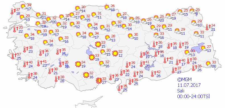 Hava Durumu: Az bulutlu ve açık, Rüzgar: Kuzey Ege'de kuzey ve kuzeydoğudan 4 ila 6 (30-50 km/sa), Güney Ege'de kuzey ve kuzeybatıdan 3 ila 5 (20-40km/sa) kuvvetinde, Dalga: 1,0 ila 2,0m, Görüş: İyi.